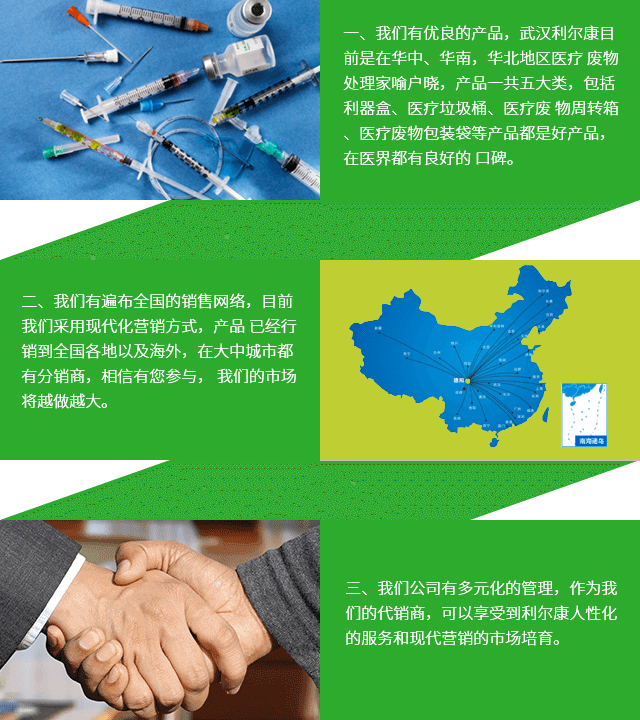 武汉市利尔康科技有限公司是一家专业从事医疗废物包装容器设计、生产和销售为一体的科技环保型企业。 公司生产的利器盒、医疗废物垃圾桶、医疗废物包装袋、医疗废物周转桶/箱、一次性医护用品等。公司生产的医疗废物周转箱是专为医疗处理中心设置,箱盖有密封槽,整体装备密闭,能防止液体渗漏、箱体和污染车厢的外环境的作用,产品完全达到《国家医疗废物管理条例》,《医疗废物专用包装物、容器标准和警示标识规定》的要求,符合卫......
